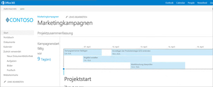 Ganz gleich, ob Sie im Team zusammenarbeiten oder Ihre Aufgaben im Alleingang erledigen müssen, SharePoint hilft Ihnen, Informationen, Personen und Projekte zu organisieren.